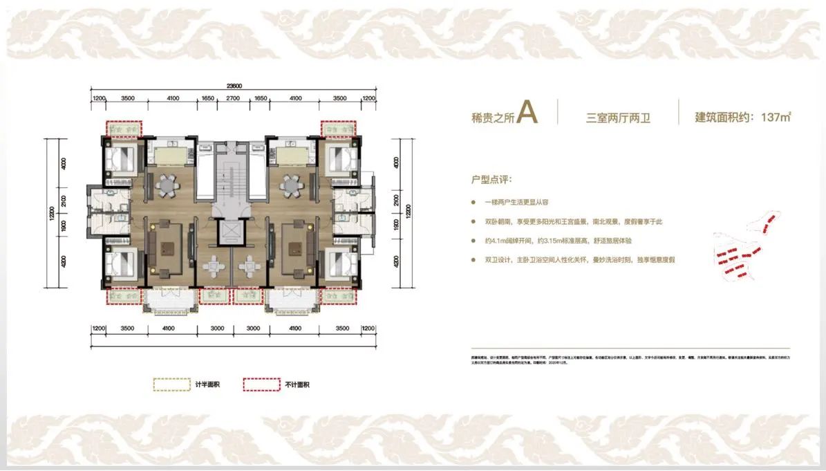 建面约 137平方米(3房2厅1厨2卫)