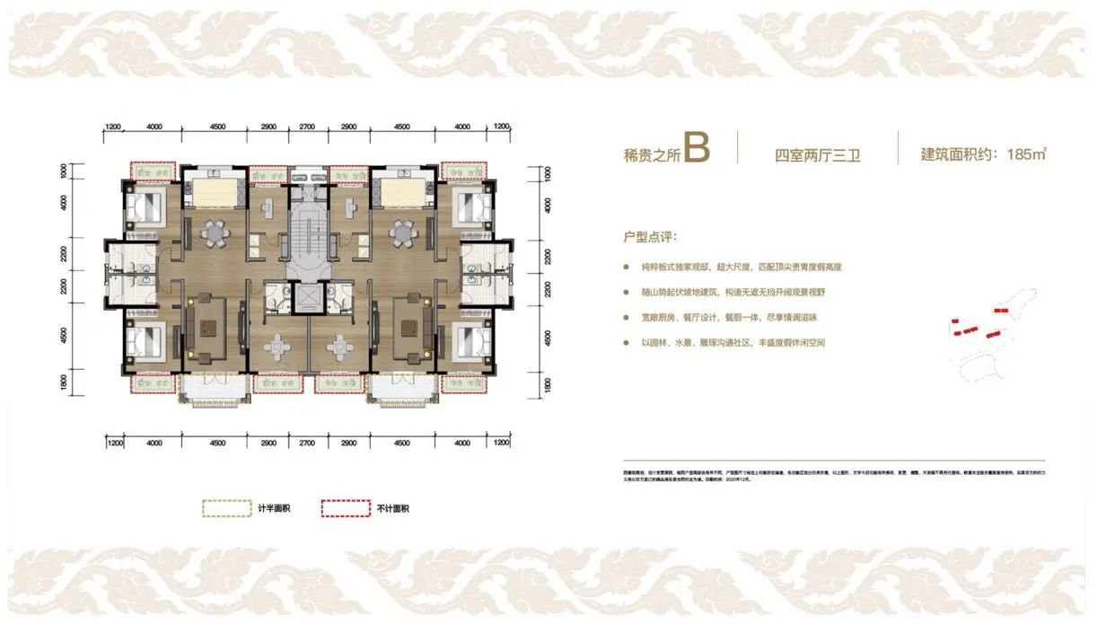 建面约185平方米(4房2厅1厨3卫)