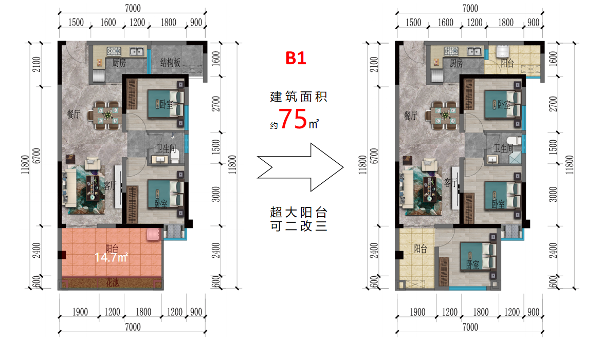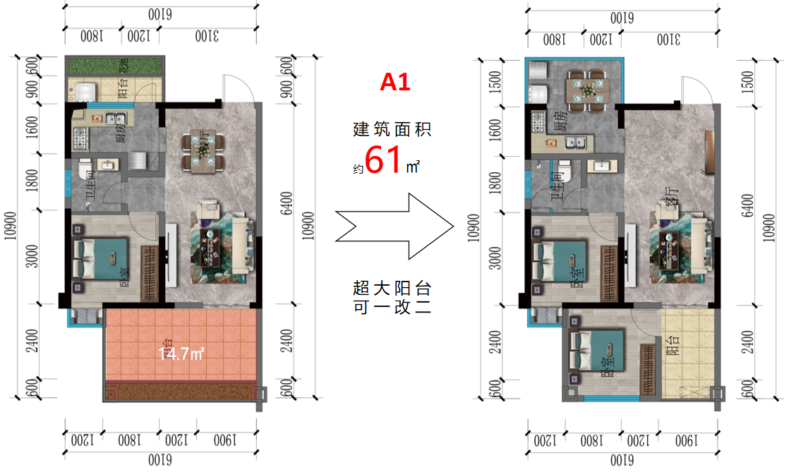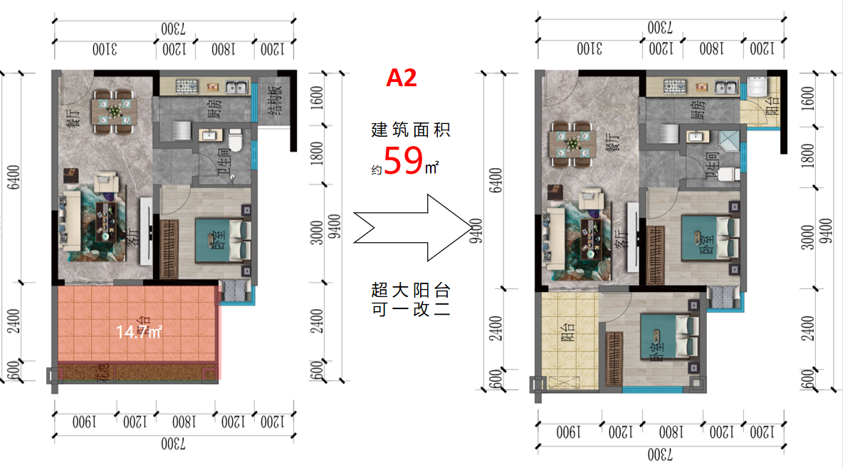 『极致空间』59㎡一室、75㎡两室单卫、111㎡三室两卫,空间的极致利用,满足一家人的旅居生活