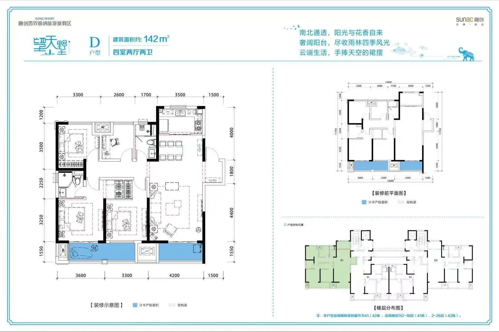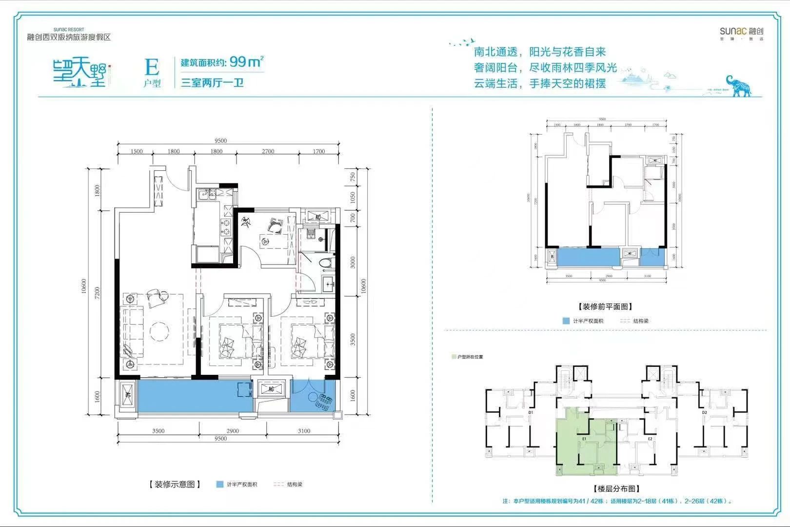 户型面积:99平三房一卫,142平四房两卫