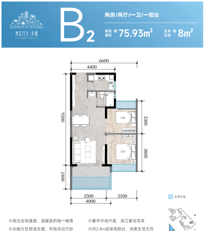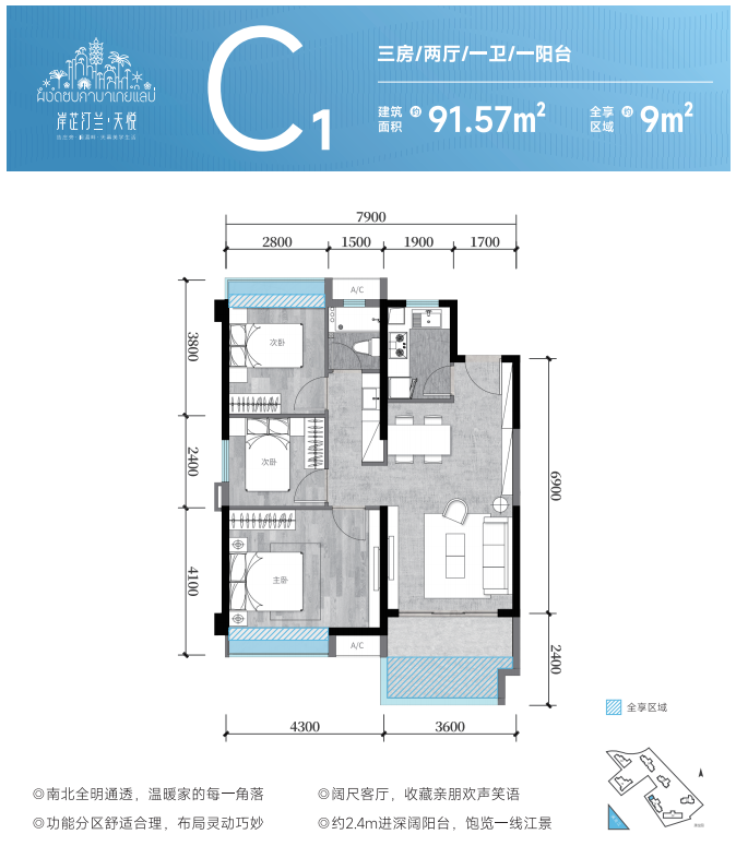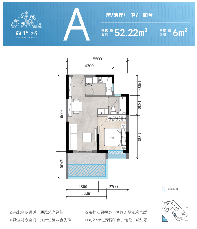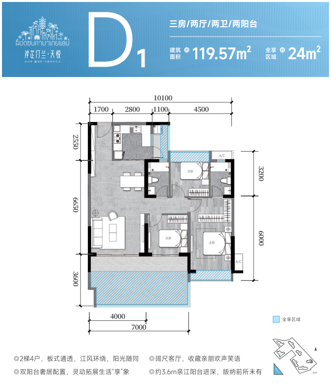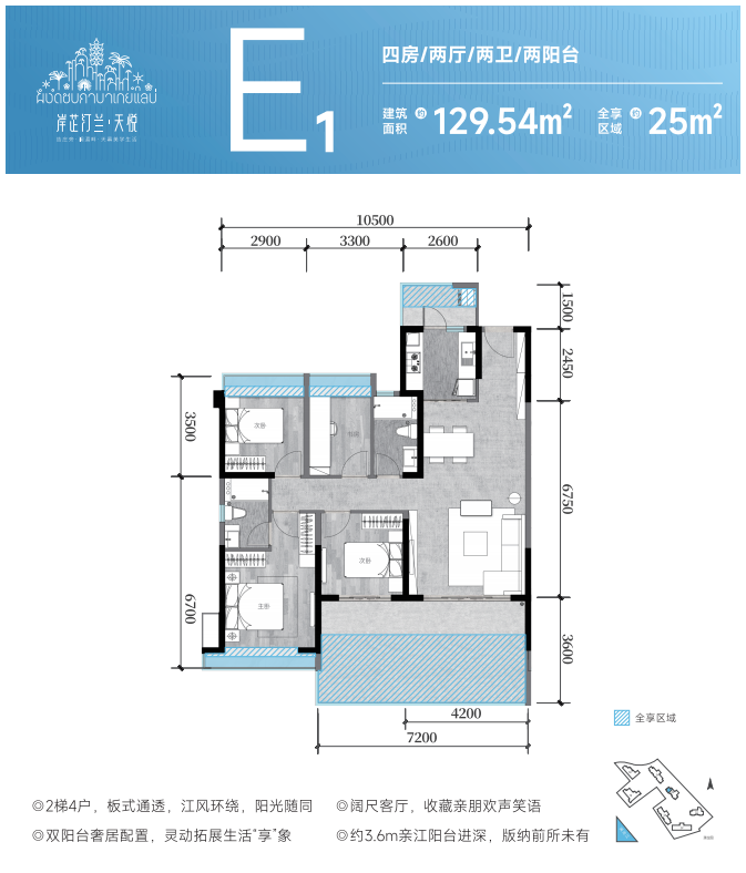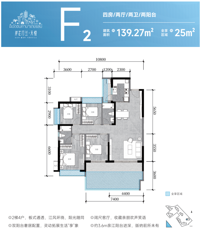 奢阔瞰江超大阳台(最大3.6m*7.4m)